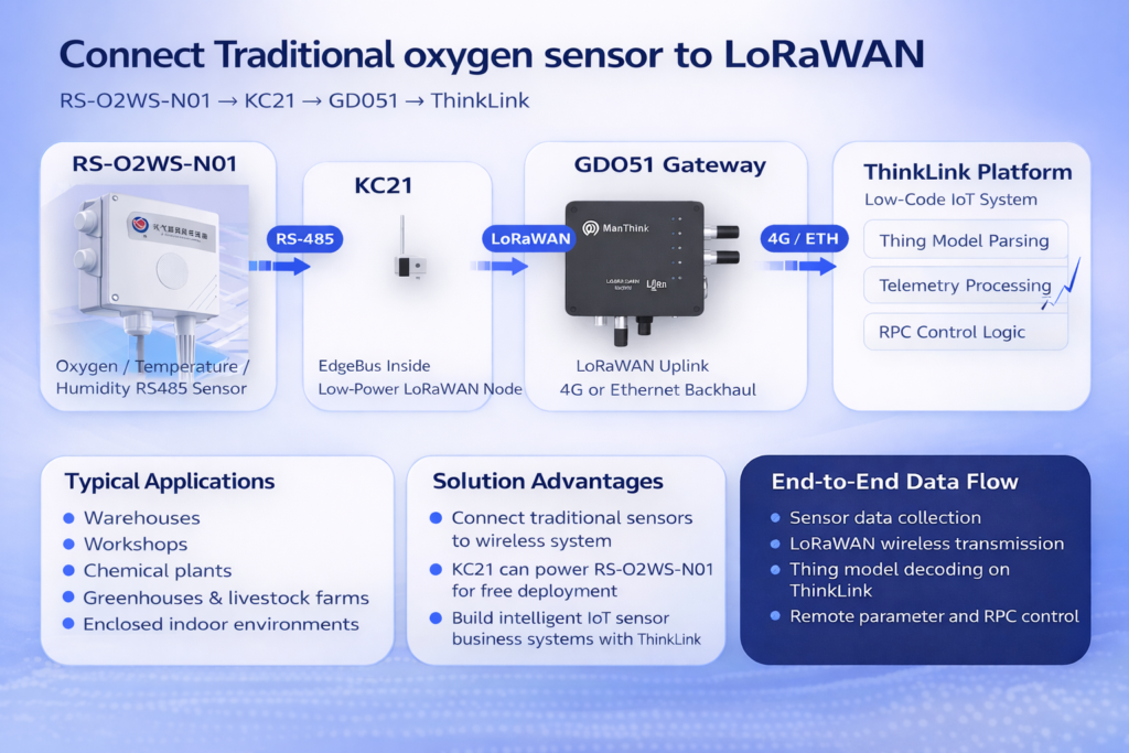 In many industrial and environmental monitoring projects, a large number of RS485-based sensors are already deployed, such as oxygen, temperature, and humidity sensors.